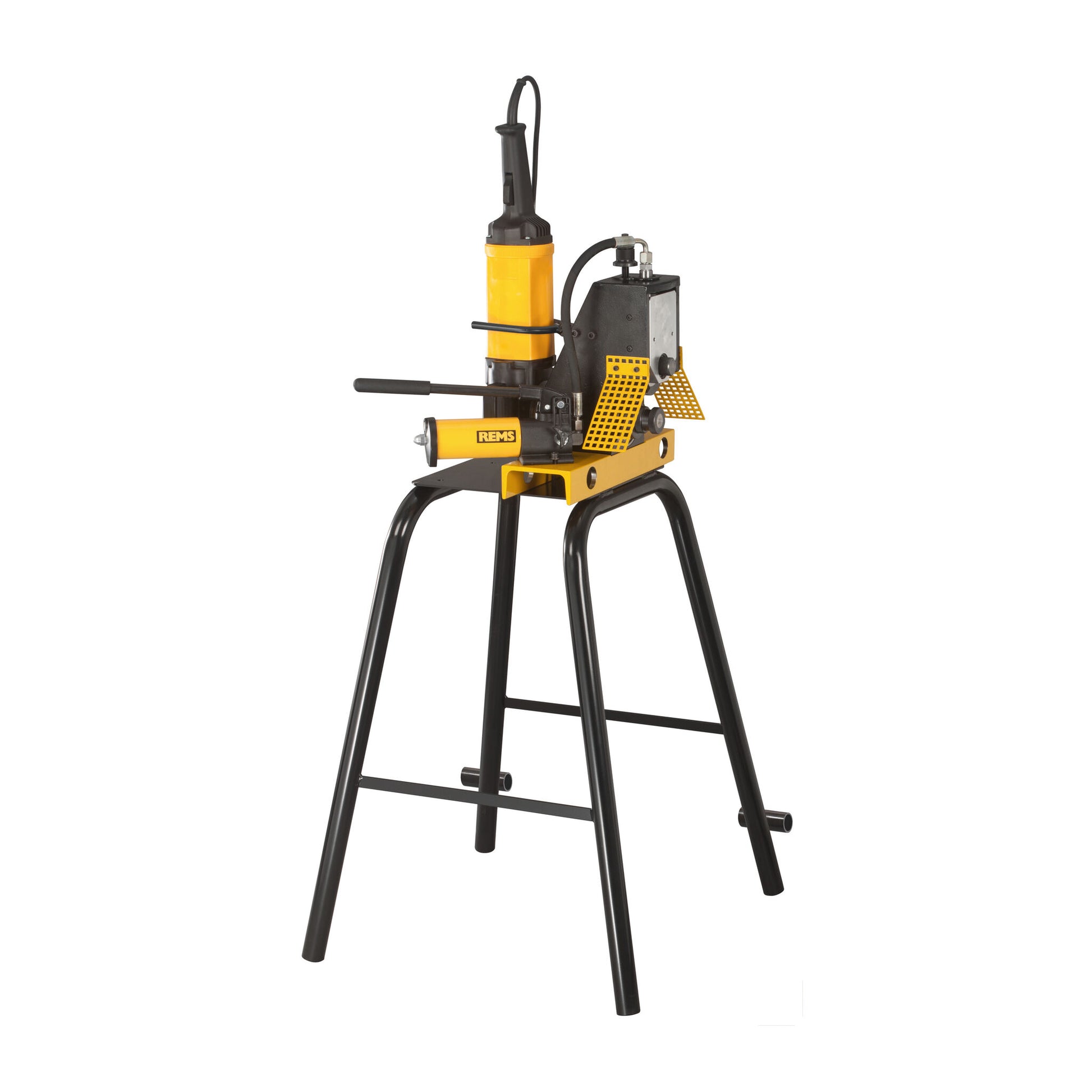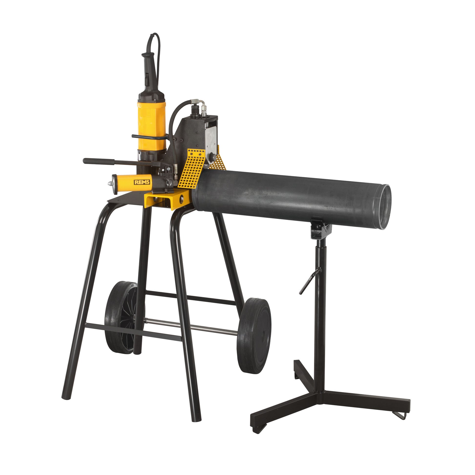 The REMS 347008 Collum 2 is a powerful electric roll grooving machine designed for pipework up to 12", making it ideal for steel piping systems on construction sites. Its compact and lightweight design allows for easy transportation, while the 1,700W universal motor delivers fast and reliable grooving, completing a 6" groove in just 52 seconds. Features include axial knurled pressure rollers for precision, hardened steel grooving rollers for durability, and a hydraulic hand pump for controlled pressure build-up. A ring gauge ensures automatic groove depth stop for repeatable accuracy.