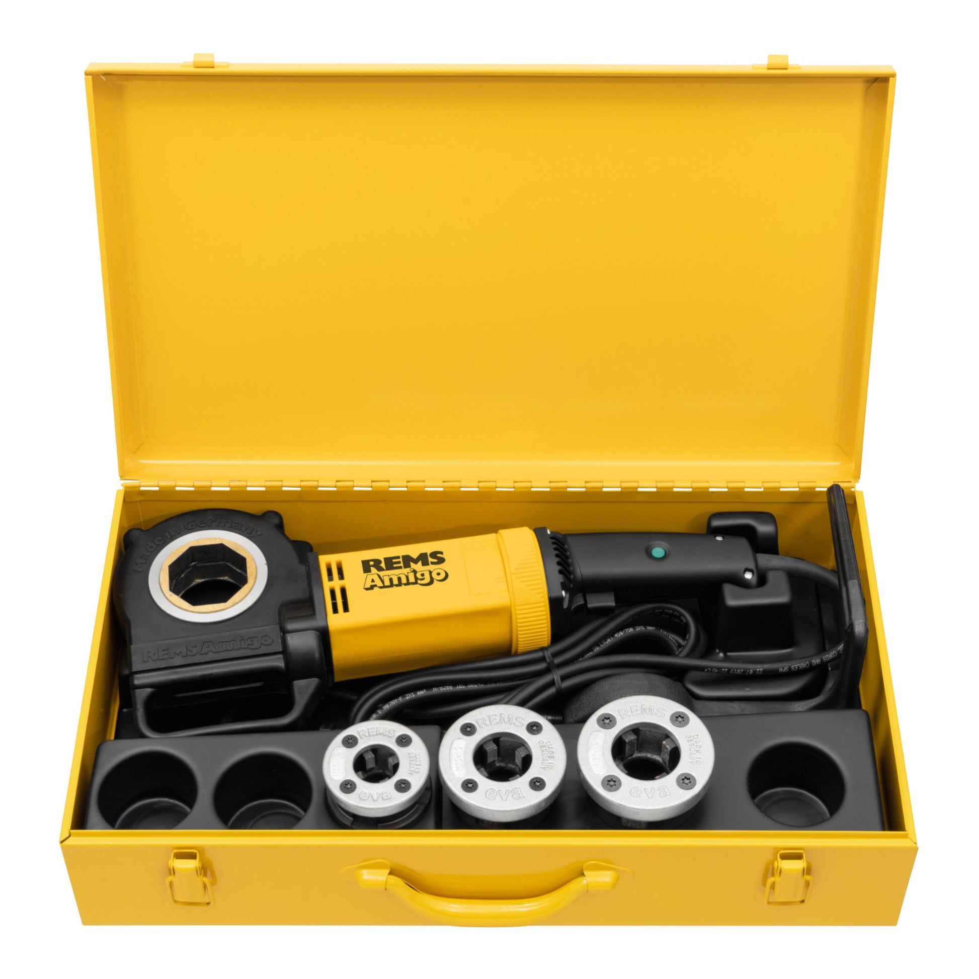 The REMS 530027 Amigo is a powerful electric threading machine suitable for rapid installation of 20mm, 25mm and 32mm steel and galvanised steel conduit. The Amigo is the ideal companion for electricians with conduit projects in warehouses and commercial buildings speeding up installation and increasing productivity.